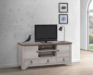 Chalk white and black two tone TV stand over 63 inches long includes plenty of storage Dimensions: 63.7" X 15.6" X 20.1"H more info